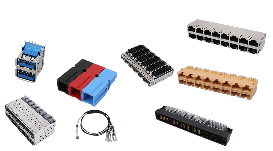 網絡連接器 (集成RJ45系列和普通RJ45系列)、高速連接器(SFP/QSFP/DSFP/CFP系列)、電源連接器、高速DAC和背板高速線纜組件、BTB連接器、網絡變壓器、RJ11連接器系列、USB&TYPE-C系列、精密五金件等。公司產品廣泛應用于包括“5G/6G”在內的網絡、通訊等行業(yè),并致力于滿足新能源汽車、高端裝備、智能顯示、軌道交通、機器人等高精尖終端領域對連接器市場的需求。